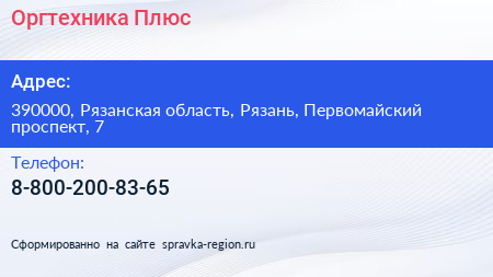 Оргтехника Плюс по адресу 390000, Рязанская область, Рязань, Первомайский проспект, 7 в дальнейшем Организация, размещена в следующих категориях: