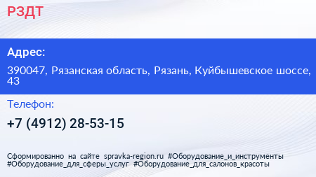 РЗДТ по адресу 390047, Рязанская область, Рязань, Куйбышевское шоссе, 43 в дальнейшем Организация, размещена в следующих категориях: