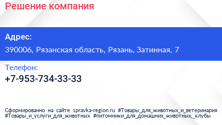 Решение, компания по адресу 390006, Рязанская область, Рязань, Затинная, 7 в дальнейшем Организация, размещена в следующих категориях:
