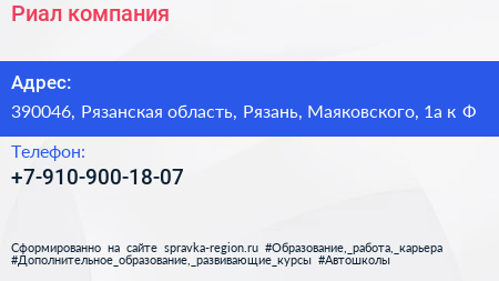 Риал, компания по адресу 390046, Рязанская область, Рязань, Маяковского, 1а к Ф в дальнейшем Организация, размещена в следующих категориях: