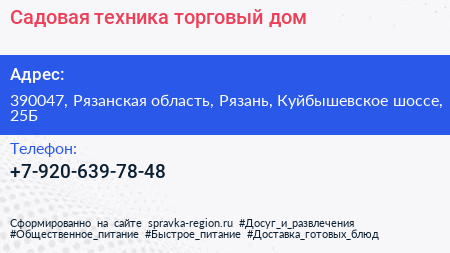 Садовая техника, торговый дом по адресу 390047, Рязанская область, Рязань, Куйбышевское шоссе, 25Б в дальнейшем Организация, размещена в следующих категориях: