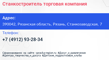 Станкостроитель, торговая компания по адресу 390042, Рязанская область, Рязань, Станкозаводская, 7 в дальнейшем Организация, размещена в следующих категориях: