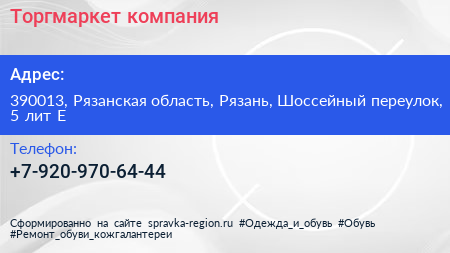 Торгмаркет, компания по адресу 390013, Рязанская область, Рязань, Шоссейный переулок, 5 лит Е в дальнейшем Организация, размещена в следующих категориях:
