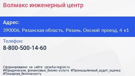 Волмакс, инженерный центр по адресу 390006, Рязанская область, Рязань, Окский проезд, 4 к1 в дальнейшем Организация, размещена в следующих категориях: