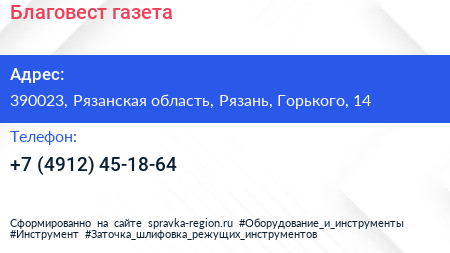 Благовест, газета по адресу 390023, Рязанская область, Рязань, Горького, 14 в дальнейшем Организация, размещена в следующих категориях: