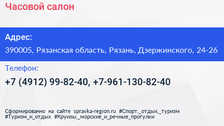 Часовой, салон по адресу 390005, Рязанская область, Рязань, Дзержинского, 24-26 в дальнейшем Организация, размещена в следующих категориях:
