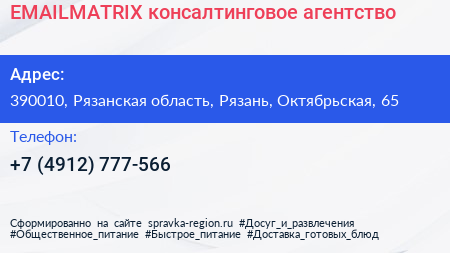 EMAILMATRIX, консалтинговое агентство по адресу 390010, Рязанская область, Рязань, Октябрьская, 65 в дальнейшем Организация, размещена в следующих категориях: