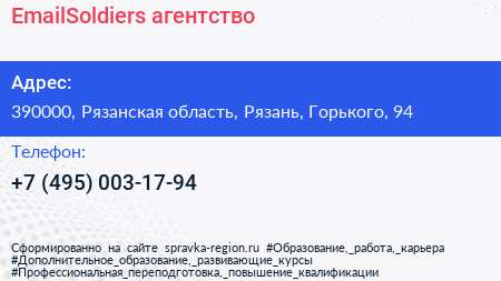 EmailSoldiers, агентство по адресу 390000, Рязанская область, Рязань, Горького, 94 в дальнейшем Организация, размещена в следующих категориях: