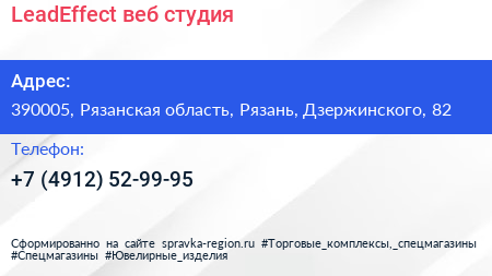 LeadEffect, веб-студия по адресу 390005, Рязанская область, Рязань, Дзержинского, 82 в дальнейшем Организация, размещена в следующих категориях: