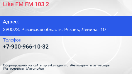 Like FM, FM 103.2 по адресу 390023, Рязанская область, Рязань, Ленина, 10 в дальнейшем Организация, размещена в следующих категориях: