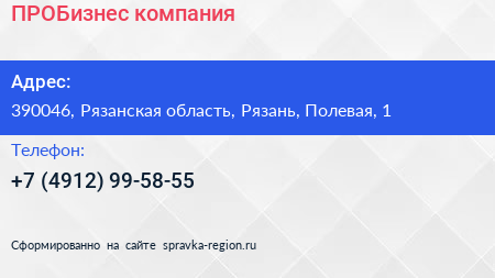 ПРОБизнес, компания по адресу 390046, Рязанская область, Рязань, Полевая, 1 в дальнейшем Организация, размещена в следующих категориях:
