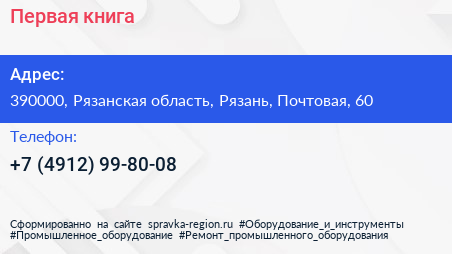 Первая книга по адресу 390000, Рязанская область, Рязань, Почтовая, 60 в дальнейшем Организация, размещена в следующих категориях: