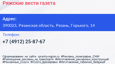 Ряжские вести, газета по адресу 390023, Рязанская область, Рязань, Горького, 14 в дальнейшем Организация, размещена в следующих категориях: