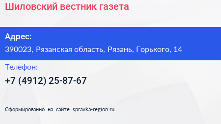 Шиловский вестник, газета по адресу 390023, Рязанская область, Рязань, Горького, 14 в дальнейшем Организация, размещена в следующих категориях: