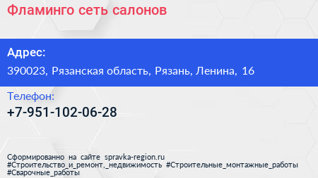 Фламинго, сеть салонов по адресу 390023, Рязанская область, Рязань, Ленина, 16 в дальнейшем Организация, размещена в следующих категориях: