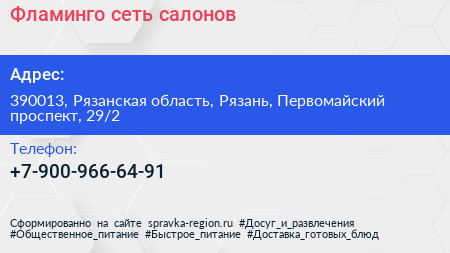 Фламинго, сеть салонов по адресу 390013, Рязанская область, Рязань, Первомайский проспект, 29/2 в дальнейшем Организация, размещена в следующих категориях: