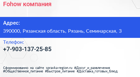 Fohow, компания по адресу 390000, Рязанская область, Рязань, Семинарская, 3 в дальнейшем Организация, размещена в следующих категориях: