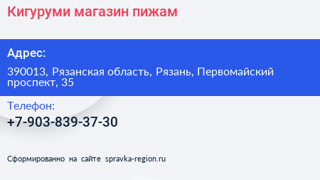 Кигуруми, магазин пижам по адресу 390013, Рязанская область, Рязань, Первомайский проспект, 35 в дальнейшем Организация, размещена в следующих категориях: