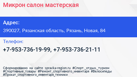 Микрон, салон-мастерская по адресу 390027, Рязанская область, Рязань, Новая, 84 в дальнейшем Организация, размещена в следующих категориях: