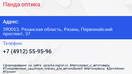Панда, оптика по адресу 390013, Рязанская область, Рязань, Первомайский проспект, 37 в дальнейшем Организация, размещена в следующих категориях: