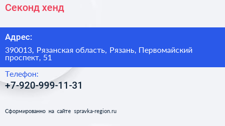 Секонд-хенд по адресу 390013, Рязанская область, Рязань, Первомайский проспект, 51 в дальнейшем Организация, размещена в следующих категориях:
