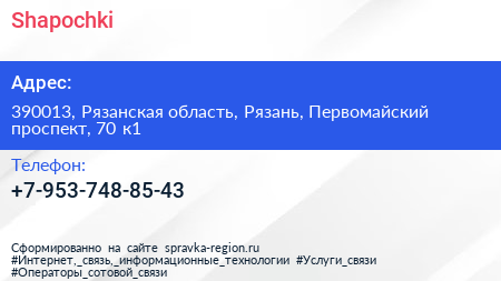 Shapochki по адресу 390013, Рязанская область, Рязань, Первомайский проспект, 70 к1 в дальнейшем Организация, размещена в следующих категориях: