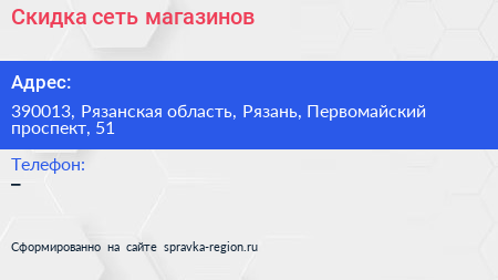 Скидка, сеть магазинов по адресу 390013, Рязанская область, Рязань, Первомайский проспект, 51 в дальнейшем Организация, размещена в следующих категориях: