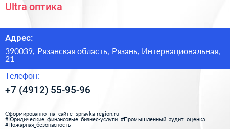 Ultra, оптика по адресу 390039, Рязанская область, Рязань, Интернациональная, 21 в дальнейшем Организация, размещена в следующих категориях: