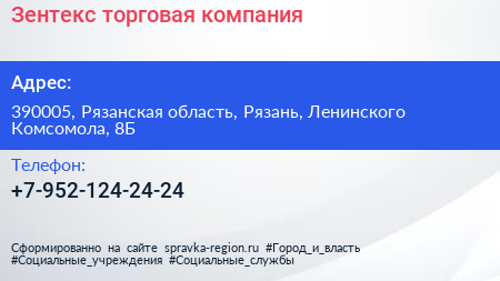 Зентекс, торговая компания по адресу 390005, Рязанская область, Рязань, Ленинского Комсомола, 8Б в дальнейшем Организация, размещена в следующих категориях: