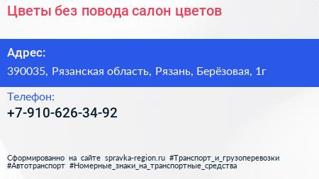 Цветы без повода, салон цветов по адресу 390035, Рязанская область, Рязань, Берёзовая, 1г в дальнейшем Организация, размещена в следующих категориях: