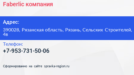 Faberlic, компания по адресу 390028, Рязанская область, Рязань, Сельских Строителей, 4в в дальнейшем Организация, размещена в следующих категориях: