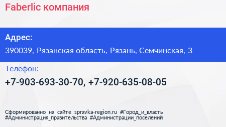 Faberlic, компания по адресу 390039, Рязанская область, Рязань, Семчинская, 3 в дальнейшем Организация, размещена в следующих категориях: