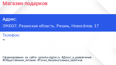 Магазин подарков по адресу 390037, Рязанская область, Рязань, Новосёлов, 17 в дальнейшем Организация, размещена в следующих категориях: