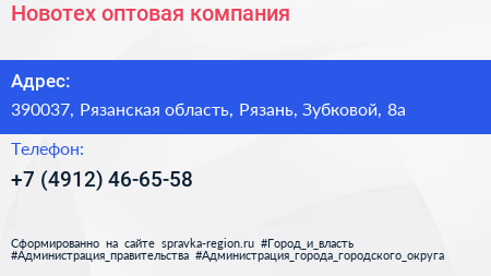 Новотех, оптовая компания по адресу 390037, Рязанская область, Рязань, Зубковой, 8а в дальнейшем Организация, размещена в следующих категориях: