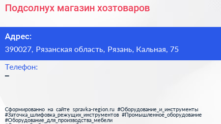 Подсолнух, магазин хозтоваров по адресу 390027, Рязанская область, Рязань, Кальная, 75 в дальнейшем Организация, размещена в следующих категориях: