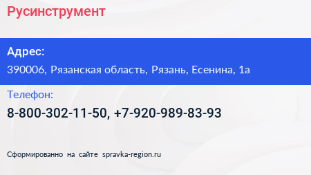 Русинструмент по адресу 390006, Рязанская область, Рязань, Есенина, 1а в дальнейшем Организация, размещена в следующих категориях: