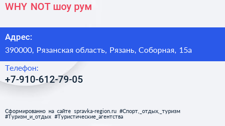 WHY NOT?, шоу-рум по адресу 390000, Рязанская область, Рязань, Соборная, 15а в дальнейшем Организация, размещена в следующих категориях: