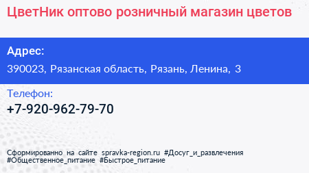 ЦветНик, оптово-розничный магазин цветов по адресу 390023, Рязанская область, Рязань, Ленина, 3 в дальнейшем Организация, размещена в следующих категориях: