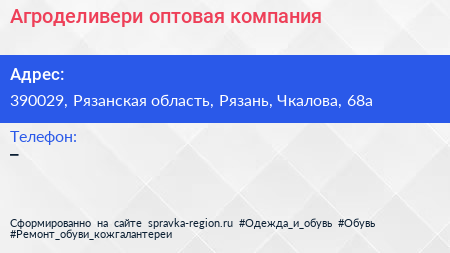 Агроделивери, оптовая компания по адресу 390029, Рязанская область, Рязань, Чкалова, 68а в дальнейшем Организация, размещена в следующих категориях: