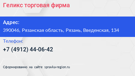 Геликс, торговая фирма по адресу 390046, Рязанская область, Рязань, Введенская, 134 в дальнейшем Организация, размещена в следующих категориях: