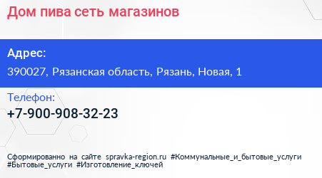 Дом пива, сеть магазинов по адресу 390027, Рязанская область, Рязань, Новая, 1 в дальнейшем Организация, размещена в следующих категориях: