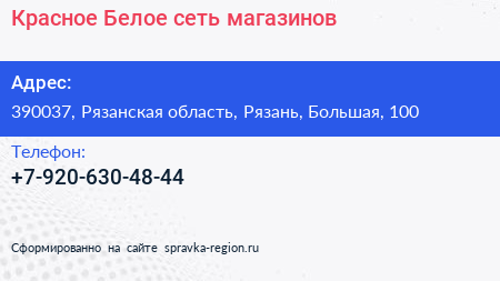 Красное & Белое, сеть магазинов по адресу 390037, Рязанская область, Рязань, Большая, 100 в дальнейшем Организация, размещена в следующих категориях: