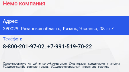 Немо, компания по адресу 390029, Рязанская область, Рязань, Чкалова, 38 ст7 в дальнейшем Организация, размещена в следующих категориях: