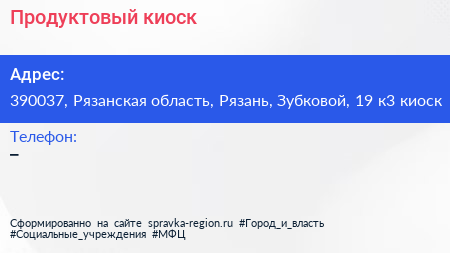 Продуктовый киоск по адресу 390037, Рязанская область, Рязань, Зубковой, 19 к3 киоск в дальнейшем Организация, размещена в следующих категориях: