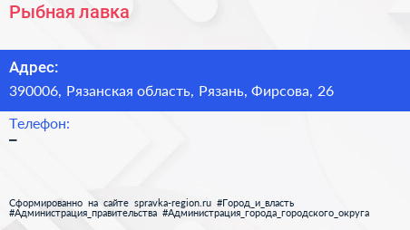 Рыбная лавка по адресу 390006, Рязанская область, Рязань, Фирсова, 26 в дальнейшем Организация, размещена в следующих категориях: