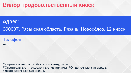 Вилор, продовольственный киоск по адресу 390037, Рязанская область, Рязань, Новосёлов, 12 киоск в дальнейшем Организация, размещена в следующих категориях: