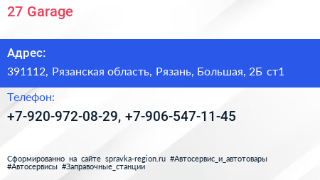 27 Garage по адресу 391112, Рязанская область, Рязань, Большая, 2Б ст1 в дальнейшем Организация, размещена в следующих категориях: