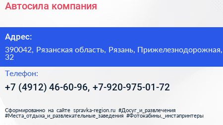 Автосила, компания по адресу 390042, Рязанская область, Рязань, Прижелезнодорожная, 32 в дальнейшем Организация, размещена в следующих категориях: