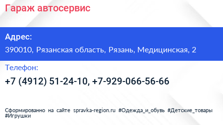 Гараж, автосервис по адресу 390010, Рязанская область, Рязань, Медицинская, 2 в дальнейшем Организация, размещена в следующих категориях:
