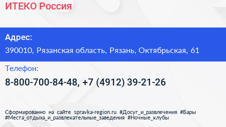 ИТЕКО Россия по адресу 390010, Рязанская область, Рязань, Октябрьская, 61 в дальнейшем Организация, размещена в следующих категориях: